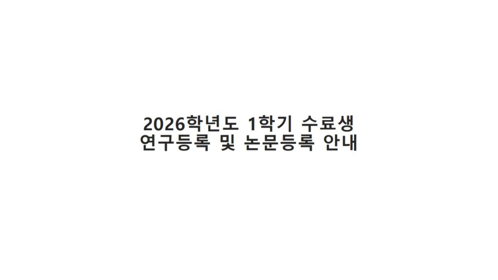 2026학년도 1학기 수료생 연구등록 및 논문등록 안내(서류제출기한 수정)