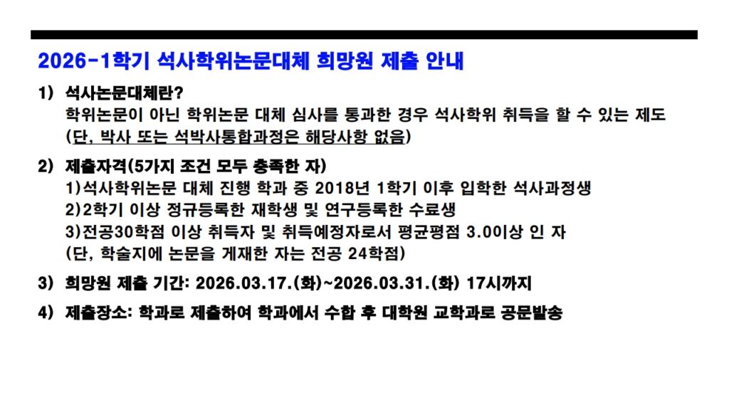 [졸업] 2026-1학기 석사학위논문대체 희망원 제출 안내