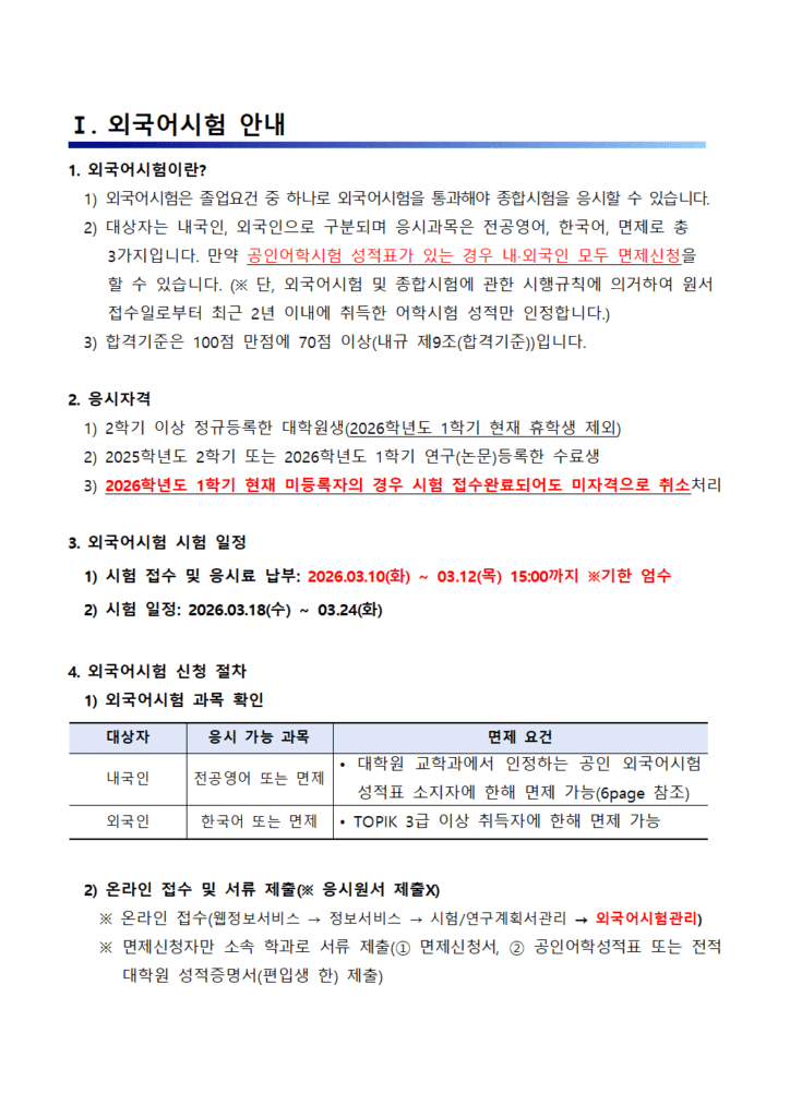 [대학원] 2026학년도 1학기 외국어 시험 접수 및 응시 안내
