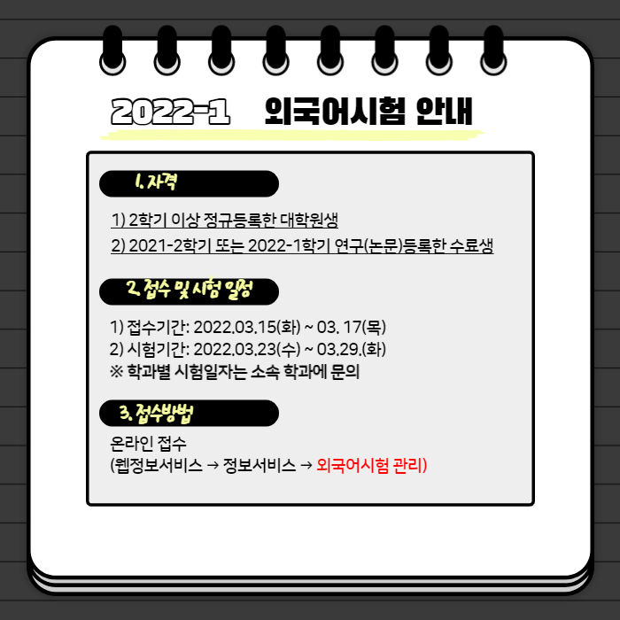 공지사항 홈알림방공지사항 2022학년도 1학기 외국어시험 안내 2022학년도 1학기 외국어시험 안내 대학원2022-03-03 페이스북 트위터 구글플러스 이메일 프린트 <외국어 시험 접수 및 고지서 출력 다운로드 ↓↓↓> 외국어시험 접수 및 고지서 출력다운로드 이전공지사항다음