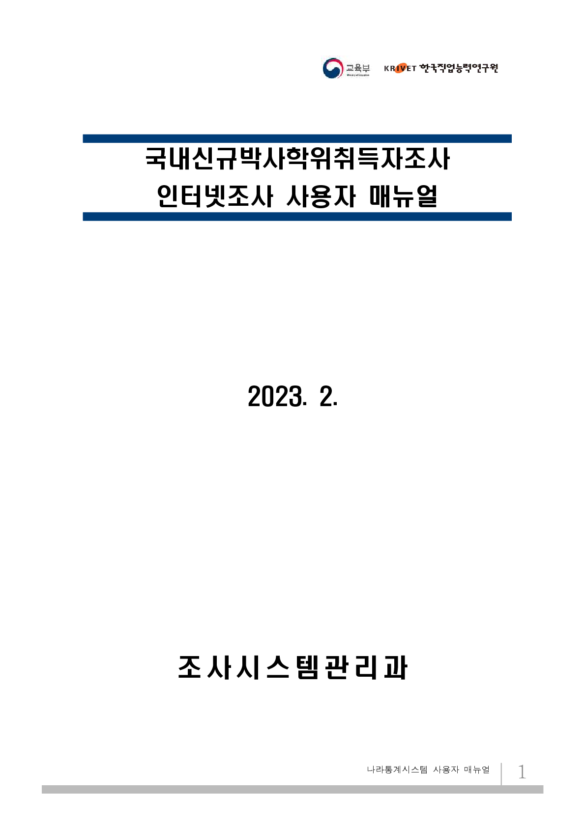 1. 조사대상 : 2023년 2월 박사학위 취득자