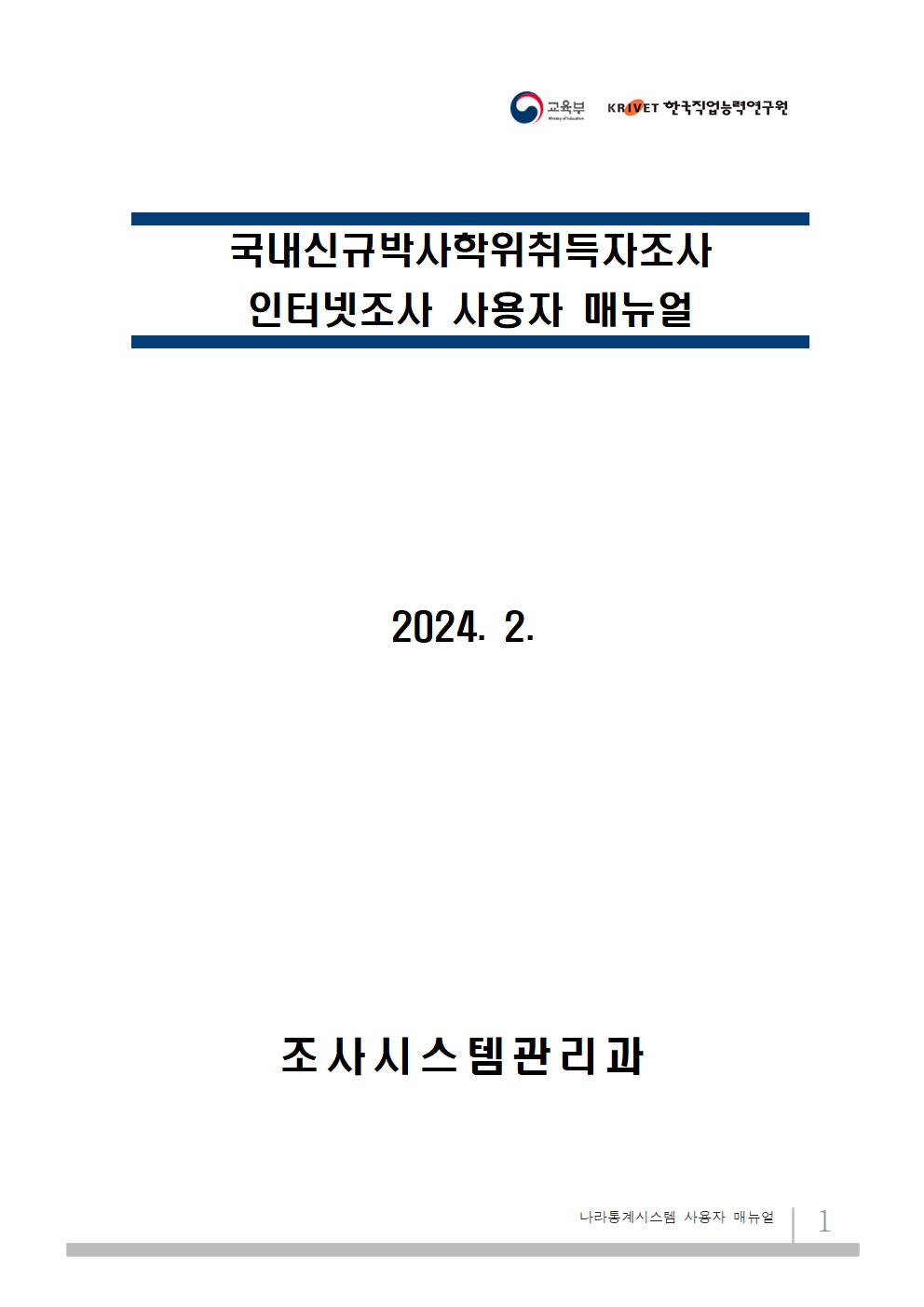 1. 조사대상 : 2024년 2월 박사학위 취득자