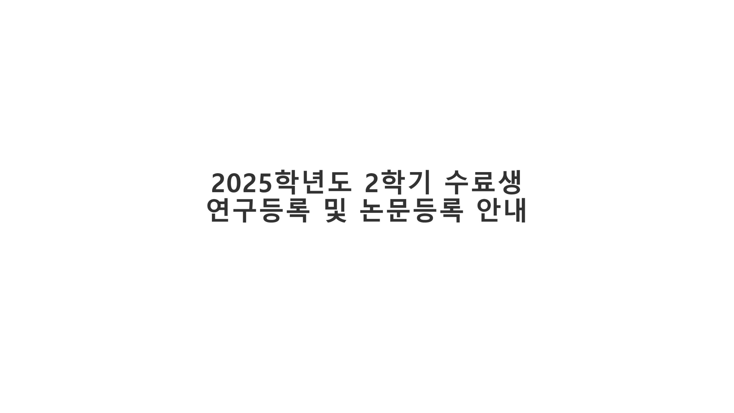 공지사항 홈알림방 2025학년도 2학기 수료생 연구등록 및 논문등록안내 2025학년도 2학기 수료생 연구등록 및 논문등록안내 대학원2025-08-25 페이스북 트위터 구글플러스 이메일 프린트 연구등록 및 논문등록 신청서 다운로드 (클릭하세요) 연구(논문)등록비 납부 매뉴얼 다운로드 (클릭하세요) 이전공지사항다음