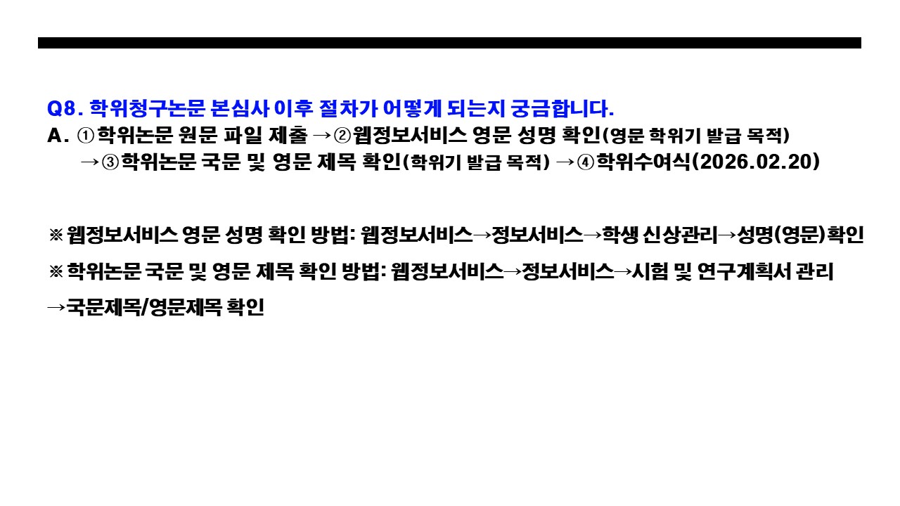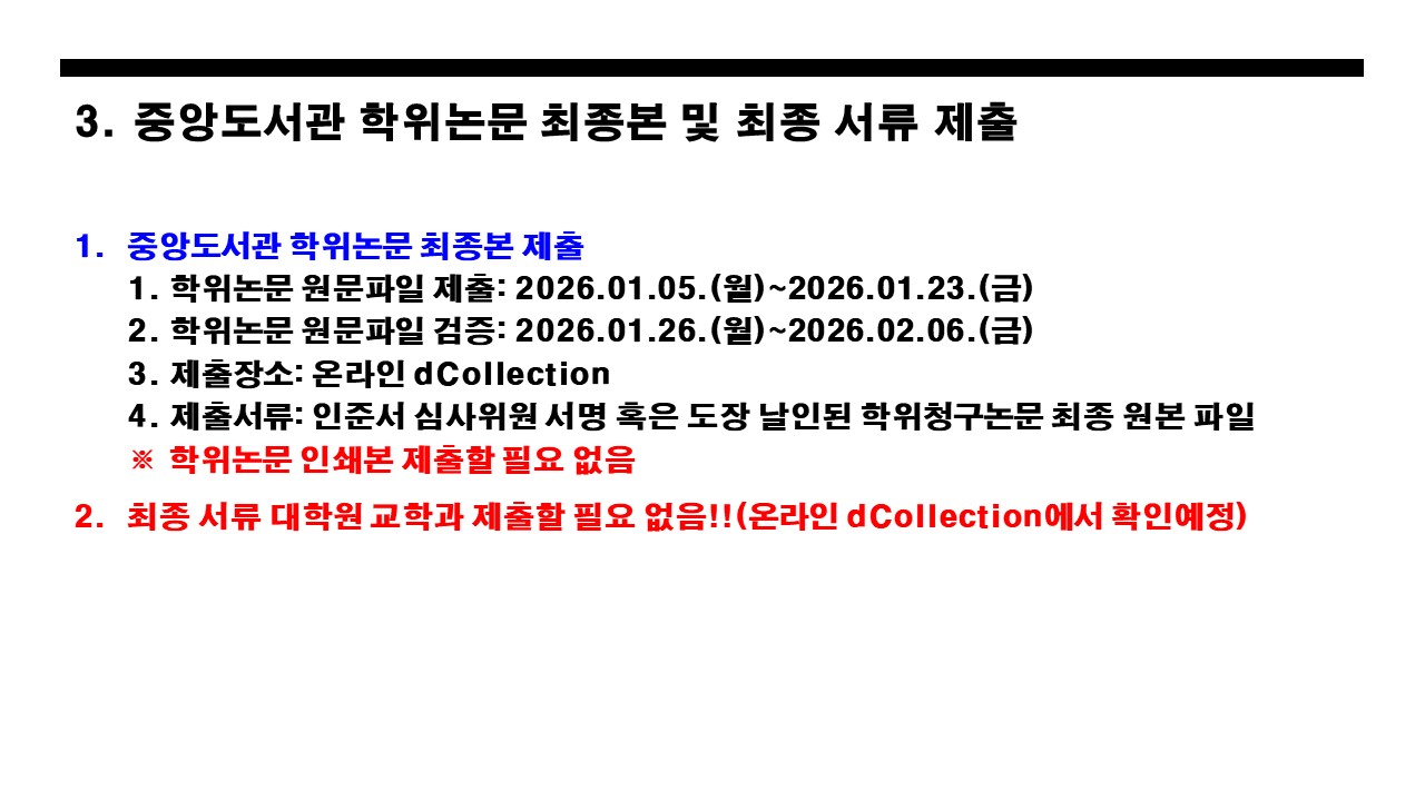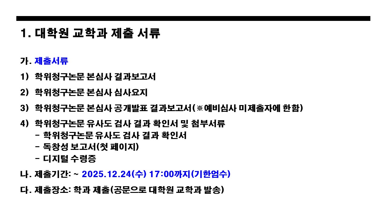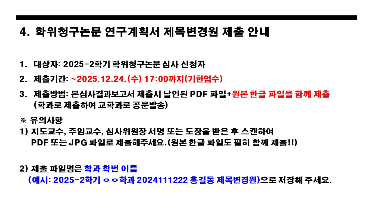 공지사항 홈알림방공지사항 [논문]2025-2학기 학위청구논문 본심사 서류제출 안내 [논문]2025-2학기 학위청구논문 본심사 서류제출 안내 대학원2025-11-17 페이스북 트위터 구글플러스 이메일 프린트 ▶ 학위청구논문 연구계획서 제목변경원 양식 다운로드 이전공지사항다음