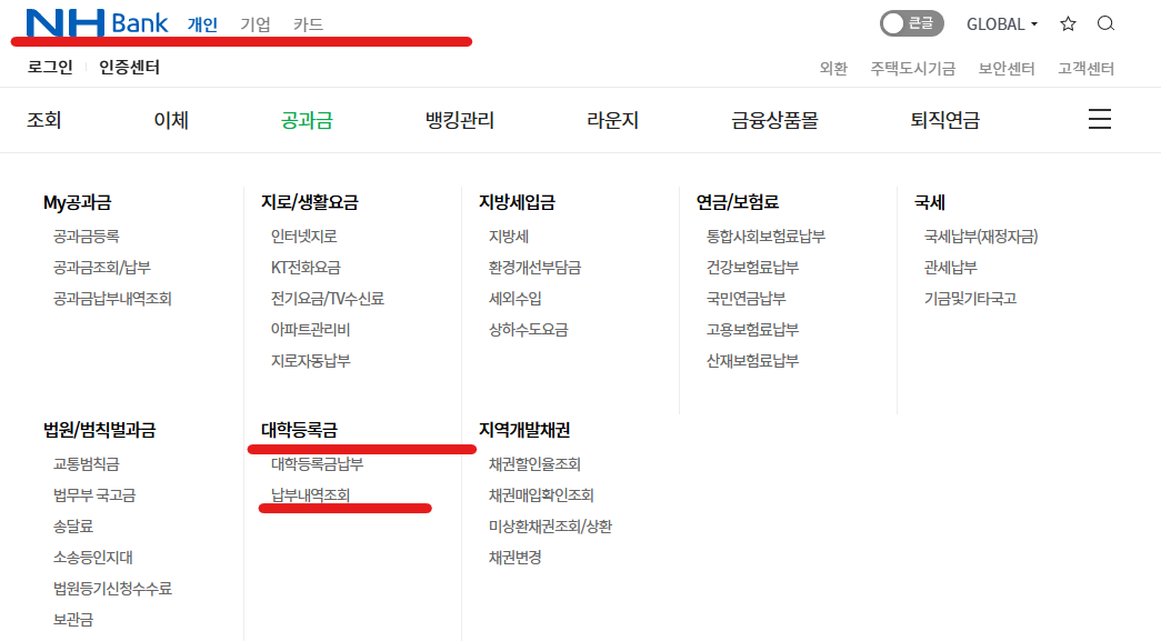 등록금 납부내역 실시간 확인 방법