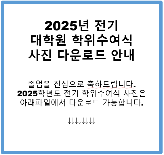 공지사항 홈알림방공지사항 2025학년도 전기 학위수여식 사진 다운로드 안내 2025학년도 전기 학위수여식 사진 다운로드 안내 대학원2026-02-23 페이스북 트위터 구글플러스 이메일 프린트 2025학년도 전기 학위수여식 2부 사진 다운로드(클릭하세요!!) 이전공지사항다음