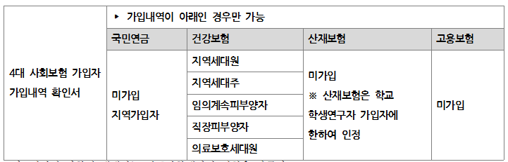 4대보험 가입내역의 조건 3. 장학금 중복 수혜 금지 해당 학기에 다른 교육/연구조교를 받지 않은 자 4. 신청 가능 대상